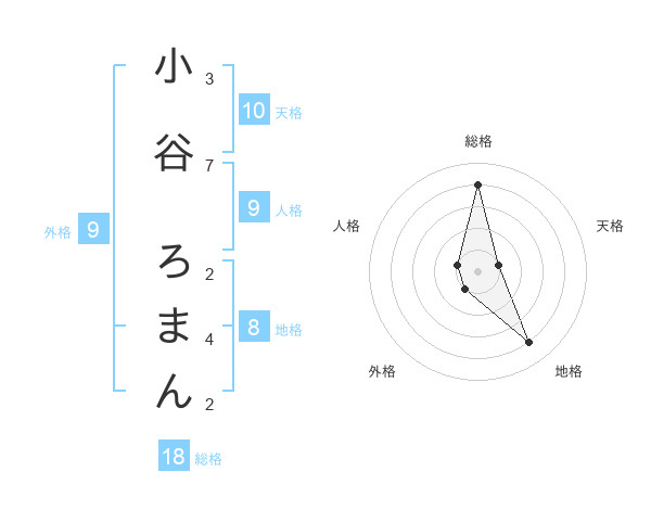 小谷 ろまんさんを姓名の画数から五運を鑑定