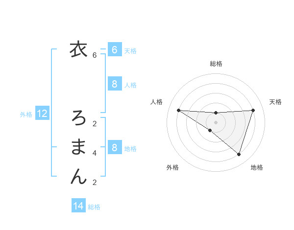 衣 ろまんさんを姓名の画数から五運を鑑定
