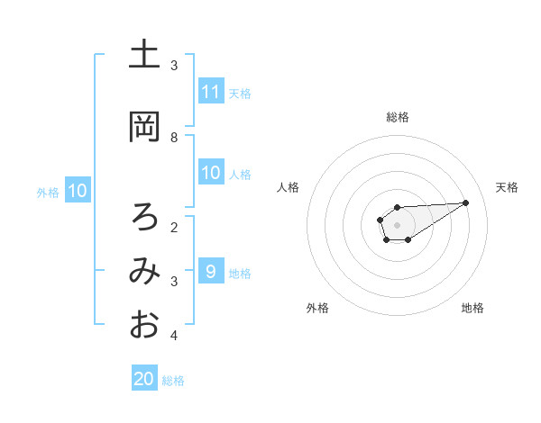 土岡 ろみおさんを姓名の画数から五運を鑑定