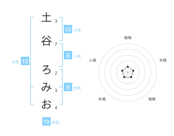 土谷 ろみおさんを姓名の画数から五運を鑑定
