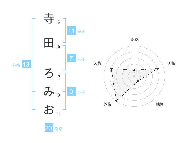 寺田 ろみおさんを姓名の画数から五運を鑑定