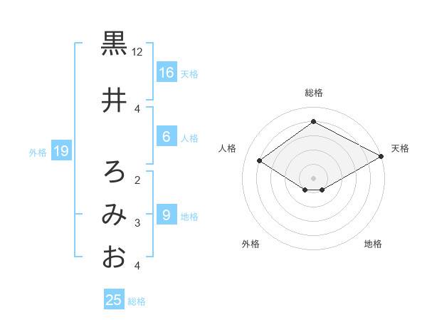 黒井 ろみおさんを姓名の画数から五運を鑑定