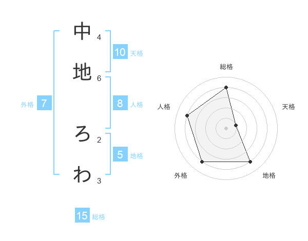 中地 ろわさんの総格は15画の4点!