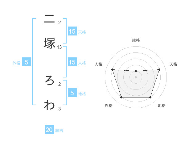 二塚 ろわさんを姓名の画数から五運を鑑定