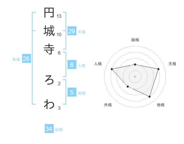 円城寺 ろわさんの地格は5画の4点!