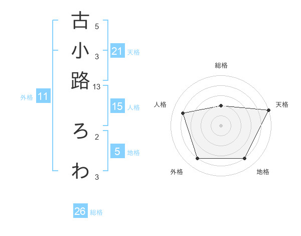 古小路 ろわさんの天格は21画の5点!