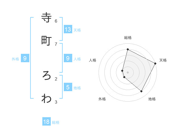 寺町 ろわさんの総格は18画の4点!