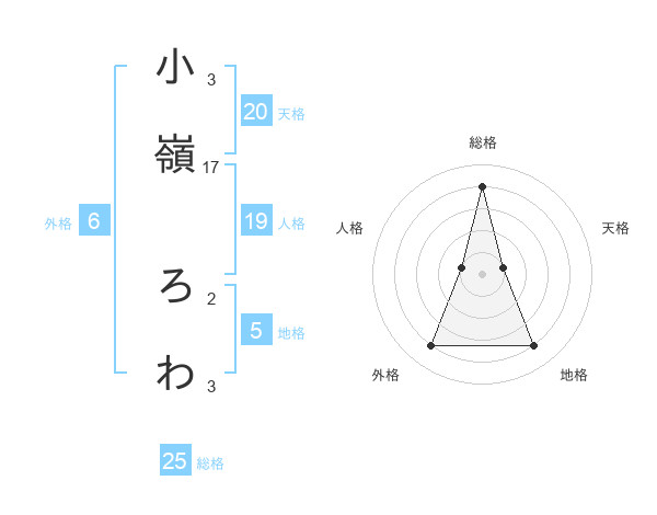 小嶺 ろわさんの総格は25画の4点!