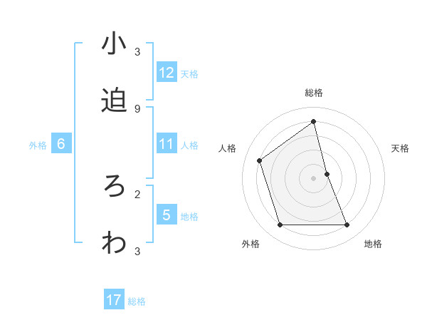 小迫 ろわさんの総格は17画の4点!
