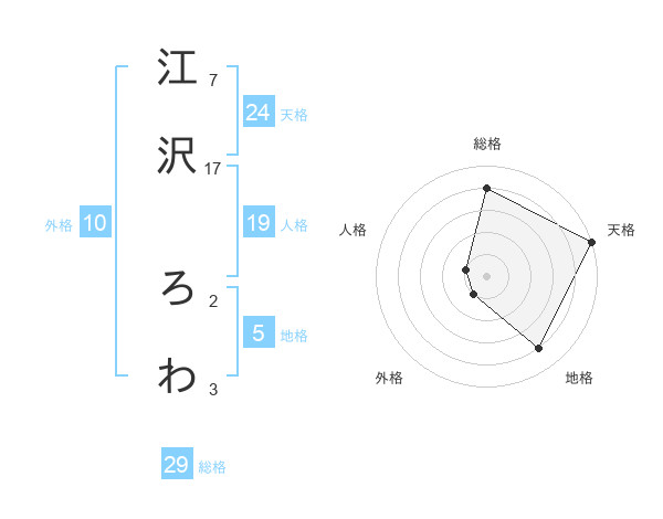 江沢 ろわさんの総格は29画の4点!