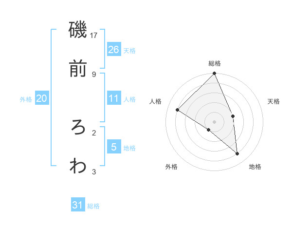 磯前 ろわさんを姓名の画数から五運を鑑定