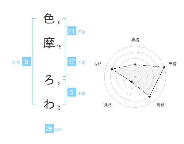 色摩 ろわさんを姓名の画数から五運を鑑定
