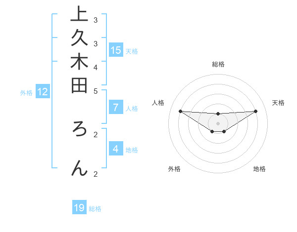 上久木田 ろんさんを姓名の画数から五運を鑑定