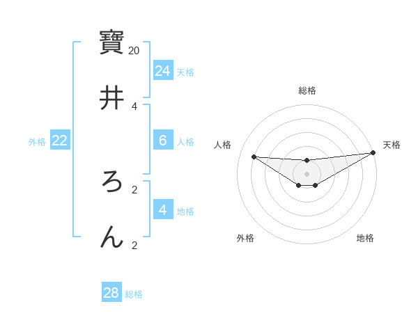 寶井 ろんさんの天格は24画の5点!