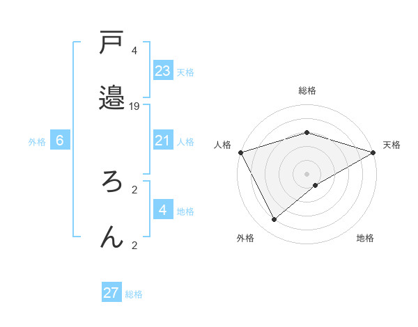 戸邉 ろんさんの天格は23画の5点!