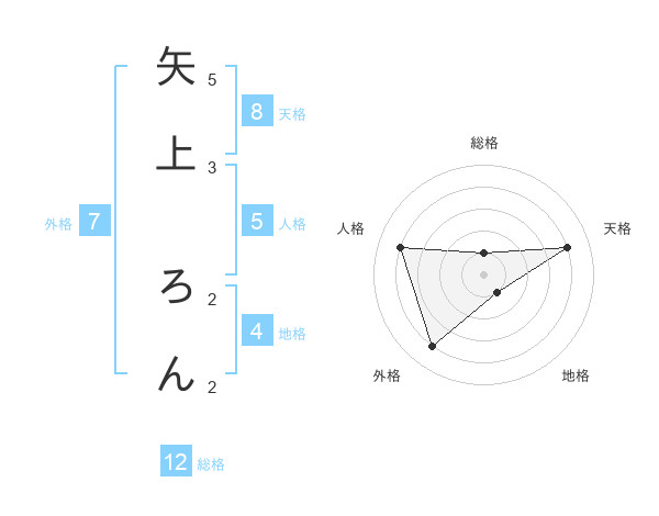 矢上 ろんさんの外格は7画の4点!