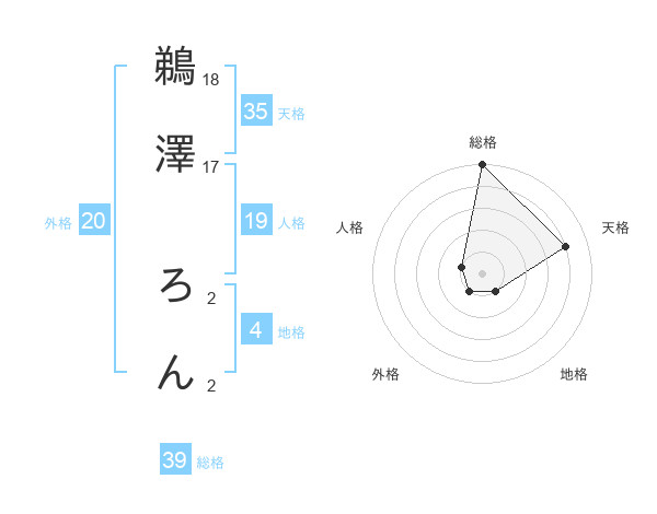 鵜澤 ろんさんの総格は39画の5点!