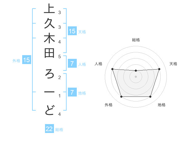 上久木田 ろーどさんを姓名の画数から五運を鑑定