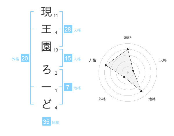 現王園 ろーどさんを姓名の画数から五運を鑑定