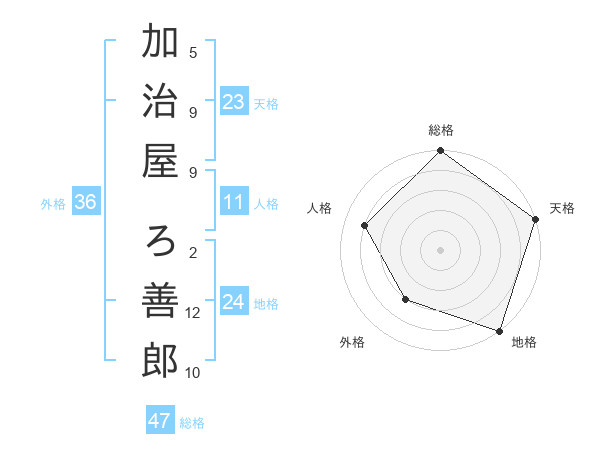 加治屋 ろ善郎さんを姓名の画数から五運を鑑定