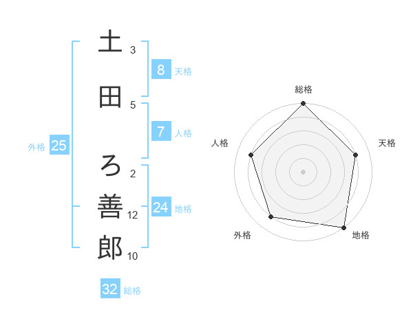 土田 ろ善郎さんを姓名の画数から五運を鑑定