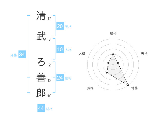 清武 ろ善郎さんの総格は44画の2点!