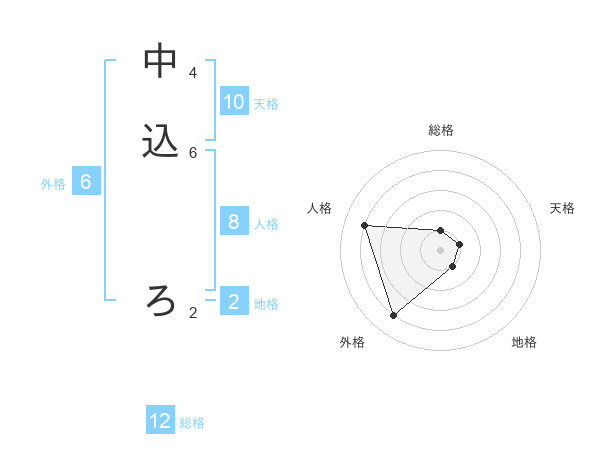 中込 ろさんの総格は12画の1点!