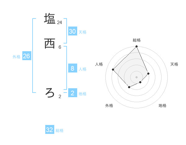 塩西 ろさんの外格は26画の2点!