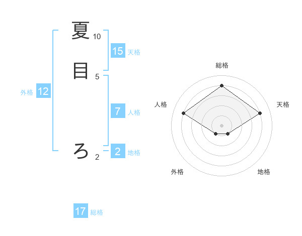 夏目 ろさんの総格は17画の4点!