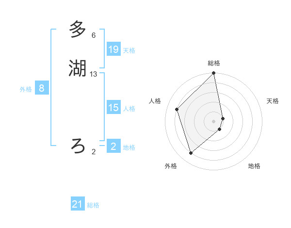 多湖 ろさんの総格は21画の5点!