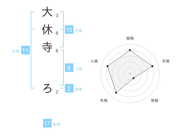 大休寺 ろさんを姓名の画数から五運を鑑定