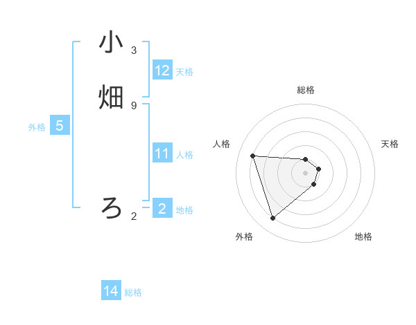 小畑 ろさんの天格は12画の1点!