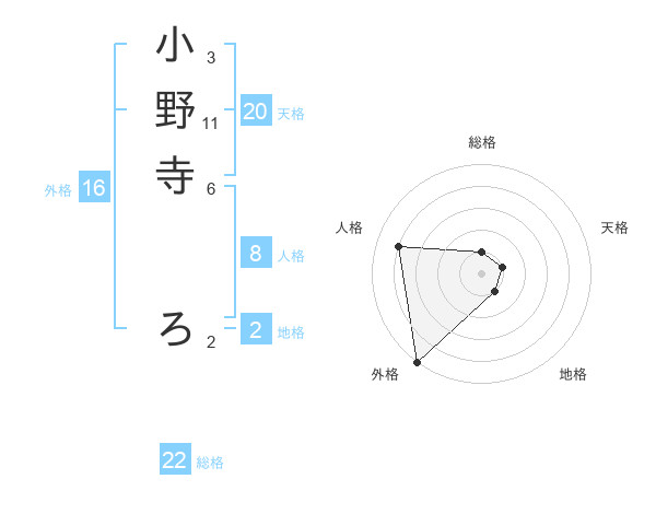 小野寺 ろさんの外格は16画の5点!