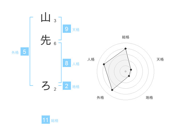 家系が持つ宿命的な運勢を表します。祖先から受け継いだ苗字ですので自分の力が及びません。家柄を象徴します。