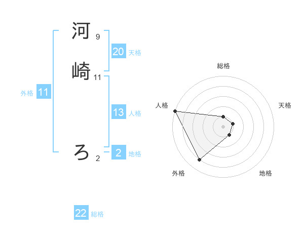河崎 ろさんの総格は22画の1点!