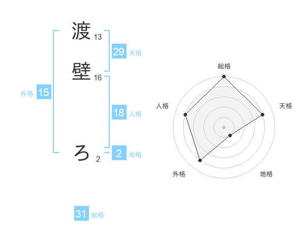 渡壁 ろさんを姓名の画数から五運を鑑定