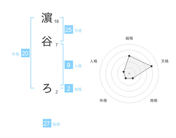 濵谷 ろさんの総格は27画の3点!