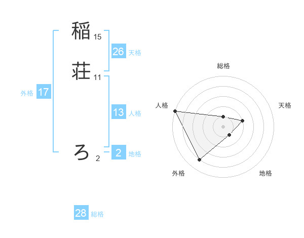 稲荘 ろさんを姓名の画数から五運を鑑定