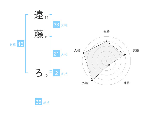 遠藤 ろさんの総格は35画の4点!