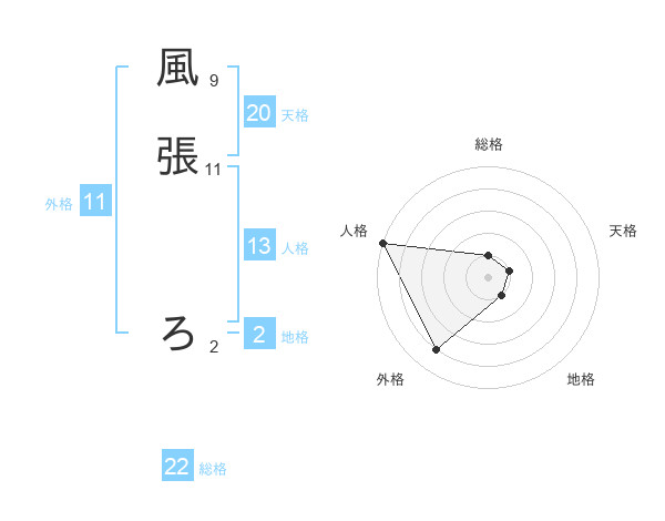 風張 ろさんの総格は22画の1点!