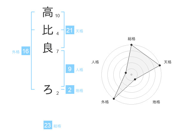 高比良 ろさんの総格は23画の5点