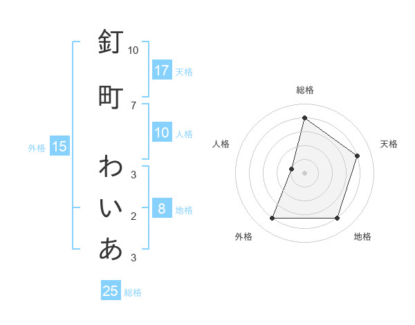 釘町 わいあさんを姓名の画数から五運を鑑定