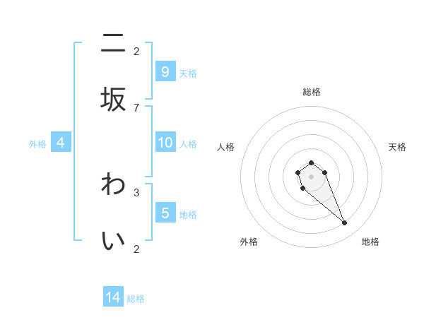 二坂 わいさんの総格は14画の1点!