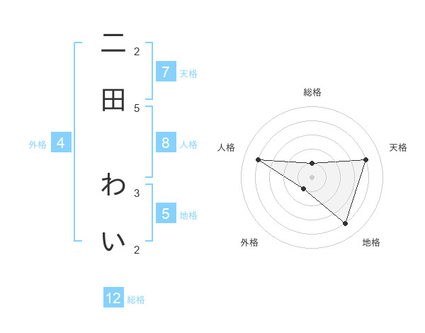 二田 わいさんの総格は12画の1点!