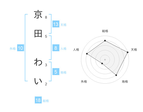 京田 わいさんの天格は13画の5点!