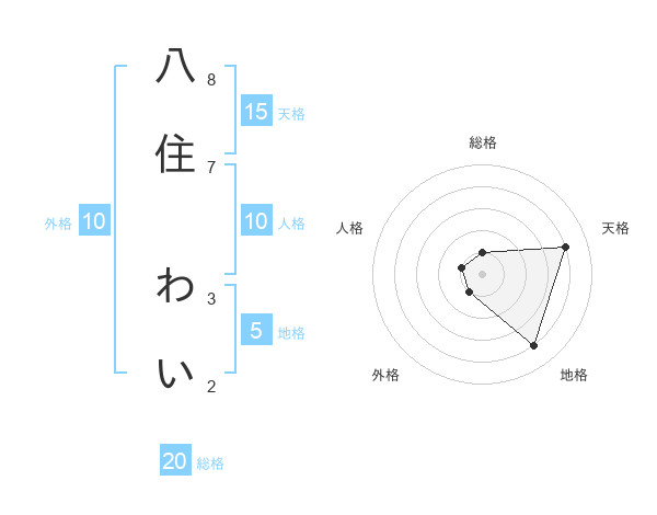 八住 わいさんの総格は20画の1点!