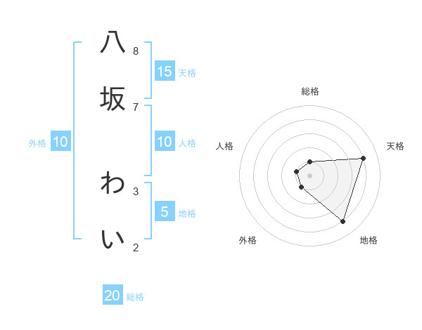 八坂 わいさんの天格は15画の4点!