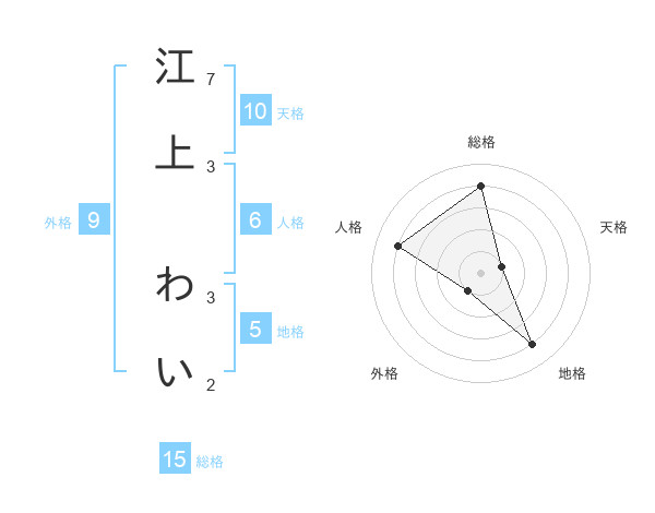 江上 わいさんの総格は15画の4点!