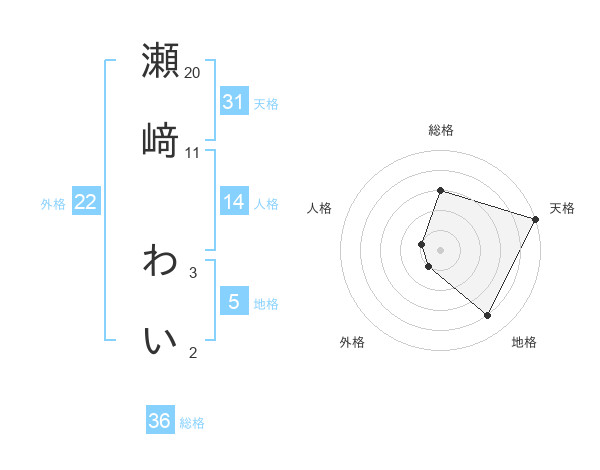 瀬﨑 わいさんの天格は31画の5点!