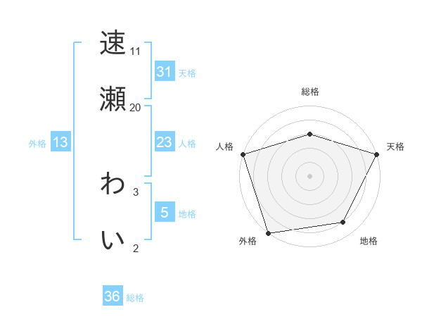速瀬 わいさんの天格は31画の5点!